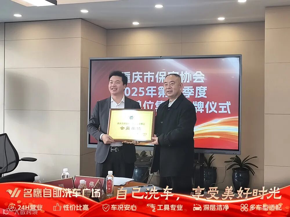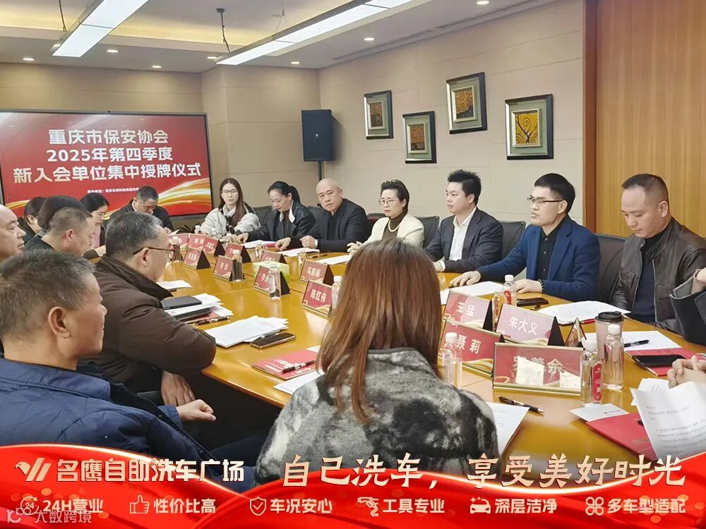 12 月 26 日,重庆市保安协会 2025 年第四季度新入会单位授牌仪式在渝隆重举行。本次仪式汇聚了行业精英与各界来宾,重庆市保安协会会长李永成先生、副会长李华先生及名鹰科技集团董事长冯前程先生、总经理卢建兰女士、常务副总裁黄庆忠先生等嘉宾出席,共同见证这一重要时刻。