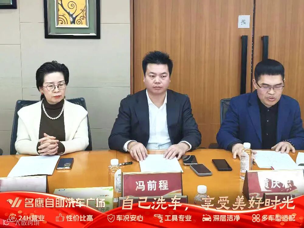 名鹰科技集团董事长冯前程先生(图中)、总经理卢建兰女士(图左)、常务副总裁黄庆忠先生(图右)出席会议