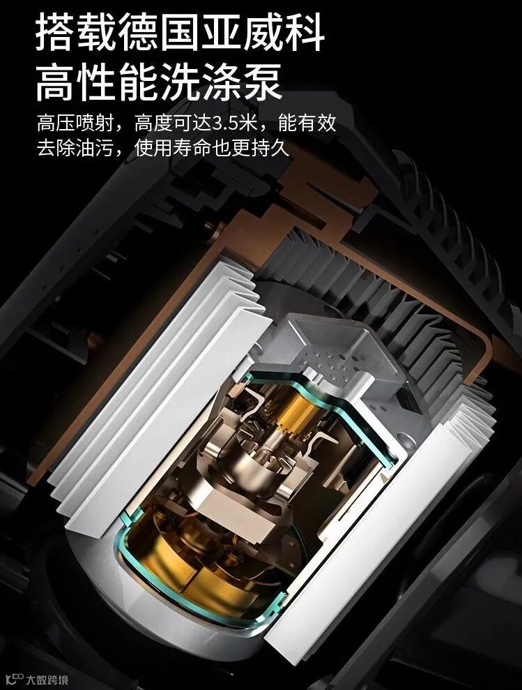 搭载德国亚威科高性能洗涤泵,高压喷射,在没有阻挡的情况能直接喷到3.5米高。