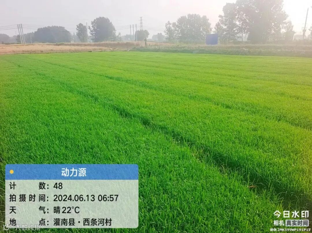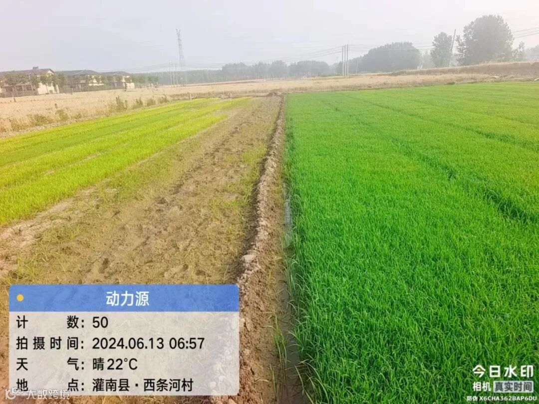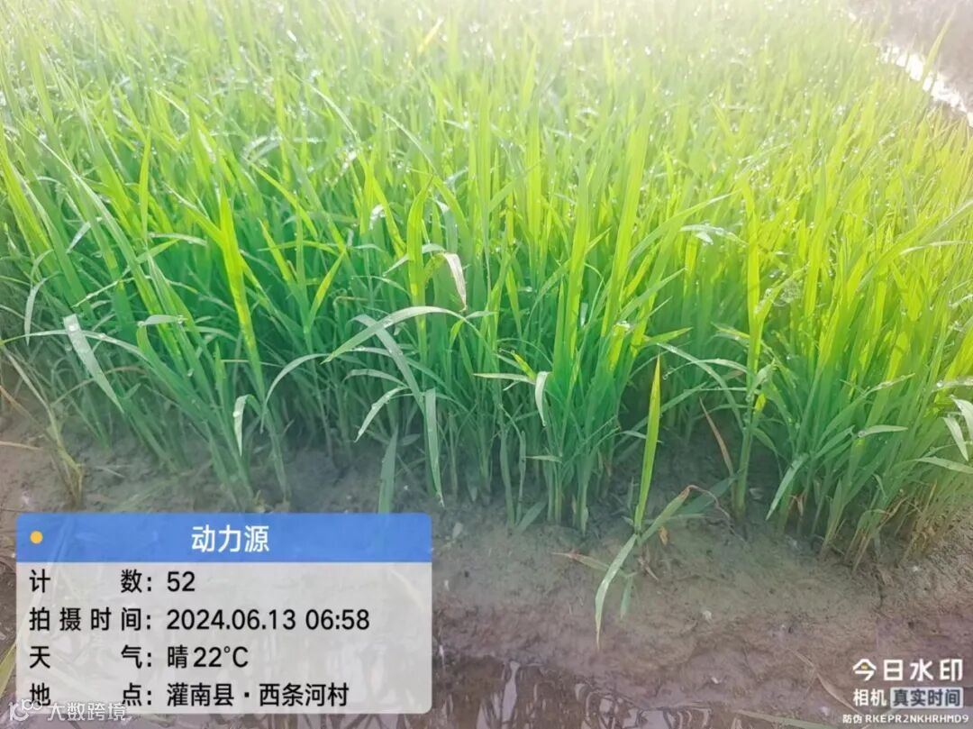 接下来,大家跟随我们的镜头来到连云港灌南县西条河村,看一下这块用过金尔动力源的秧田水稻秧苗的长势: