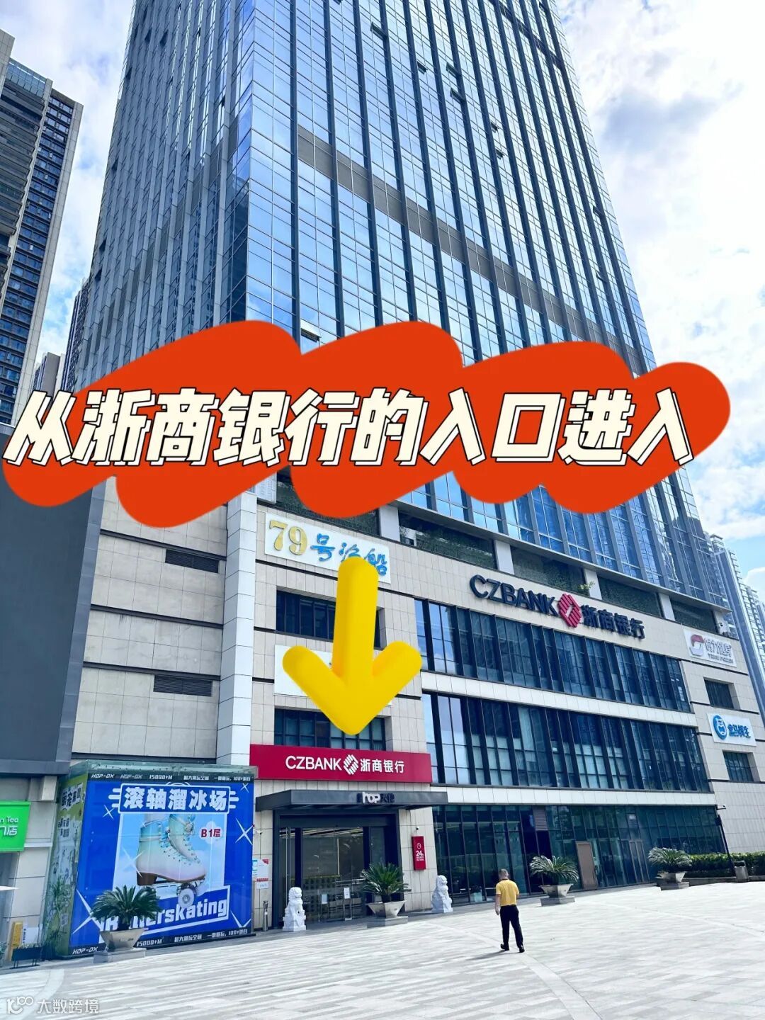 看到HOP国际大厦,从浙商银行入口进入