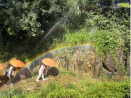 进入彩虹门,来到彩虹文化广场,感受“彩虹浪漫花海”的世界。观长108米,高18米的“彩虹浪漫飞瀑”;体验“彩虹-雨”文化,通过寻找彩虹,了解彩虹的形成;知道了美好的无法触摸的事物现在是可以由我们自己创造的。景区内参与彩虹谷降雨带、飞越彩虹、空中飞人、反斗转盘、狂牛、太空健身仪,战胜对高空的恐惧、勇于尝试;观看红嫂剧场演出—沂蒙红嫂用乳汁救护伤员的感人事迹,忆苦思甜;参观孔雀谷与孔雀亲密接触,爱护野生动物等等。真人CS对抗中明白了团队协作的重要性,每一位员工都是团队中重要的一员,都起到了不容忽视的作用,让大家更加明白团队的意义。