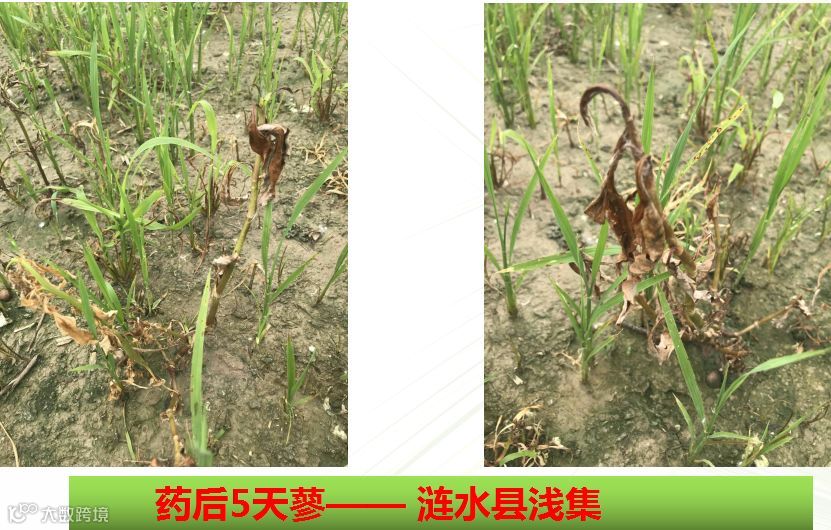 4、35℃以上用药时会增加水稻灼伤风险(温度高、光照强对除草效果更有保证)