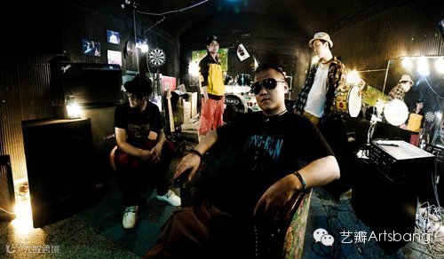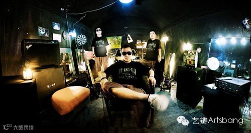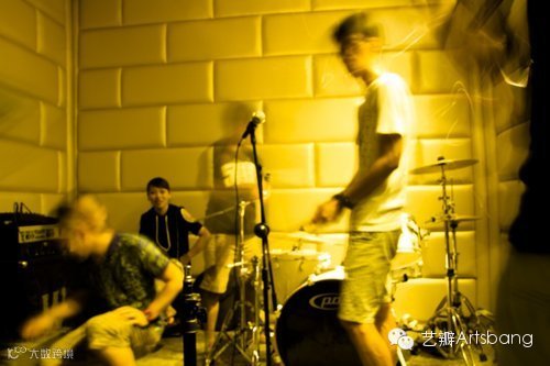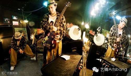 在拥挤的地下排练室,昏暗的灯光,闷热的空气,整个创作的过程可以说很随性。洋阳带去了几个电灯泡,带了一些色纸,并没有用专业的摄影灯,作为装饰光乃至主要照明。手头上并没有鱼眼镜头,但是想拍出非常强的冲击力,所以用了拍风景的手法【全景拼贴】,所以这组作品,是多张照片拼贴而成的。