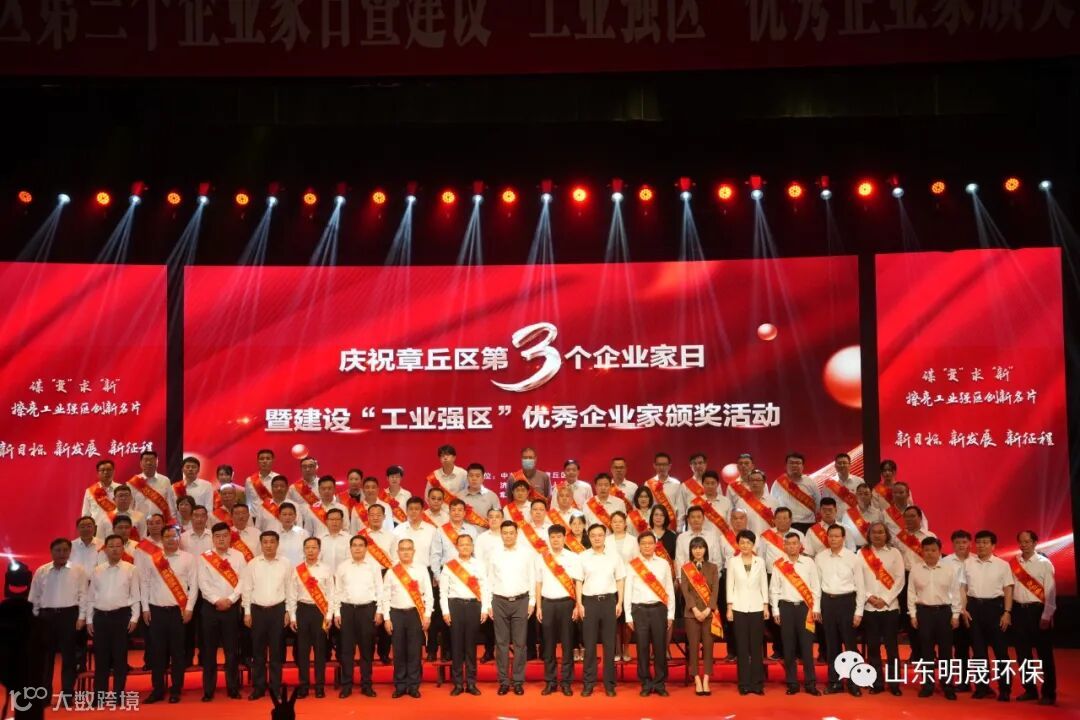 山东明晟环保科技有限公司董事长张波先生荣获“绿色典范企业家”荣誉称号,此次已是张波先生三次蝉联区优秀企业家奖项,区政协主席李宝燕,明水经济技术开发区党工委副书记、主任黄波为“绿色典范奖”获奖企业家颁奖。