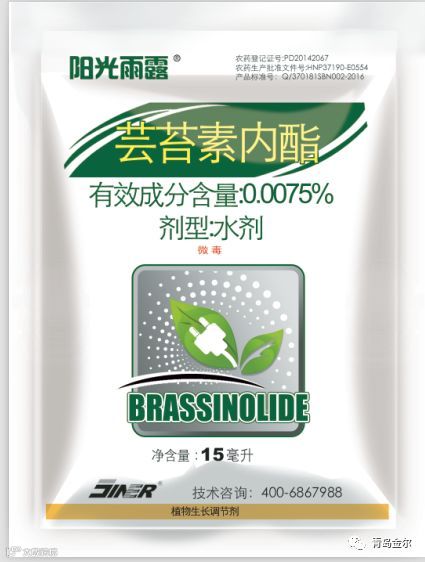 阳光雨露:0.0075%芸苔素内酯水剂,使用14-羟基芸苔素甾醇原药,是天然提取的芸苔素内酯,是目前活性最高的芸苔素内酯;