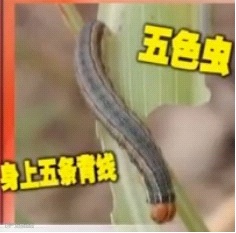 粘虫幼虫头顶有八字形黑纹、头部褐色、黄褐色至红褐色2~3龄幼虫黄褐至灰褐色,或带暗红色,4龄以上的幼虫多是黑色或灰黑色。身上有五条背线,所以叫五色虫