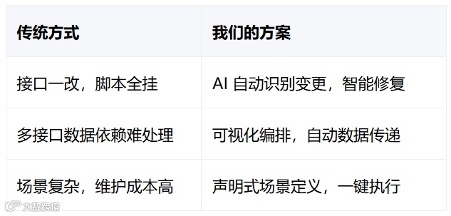 传统 UI 自动化:页面一改 → 定位器失效 → 脚本崩溃 → 人工修复 → 重新调试