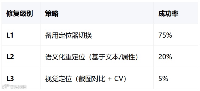 我们的方案:定位器失效 → AI 自动识别 → 多策略修复 → 测试继续
