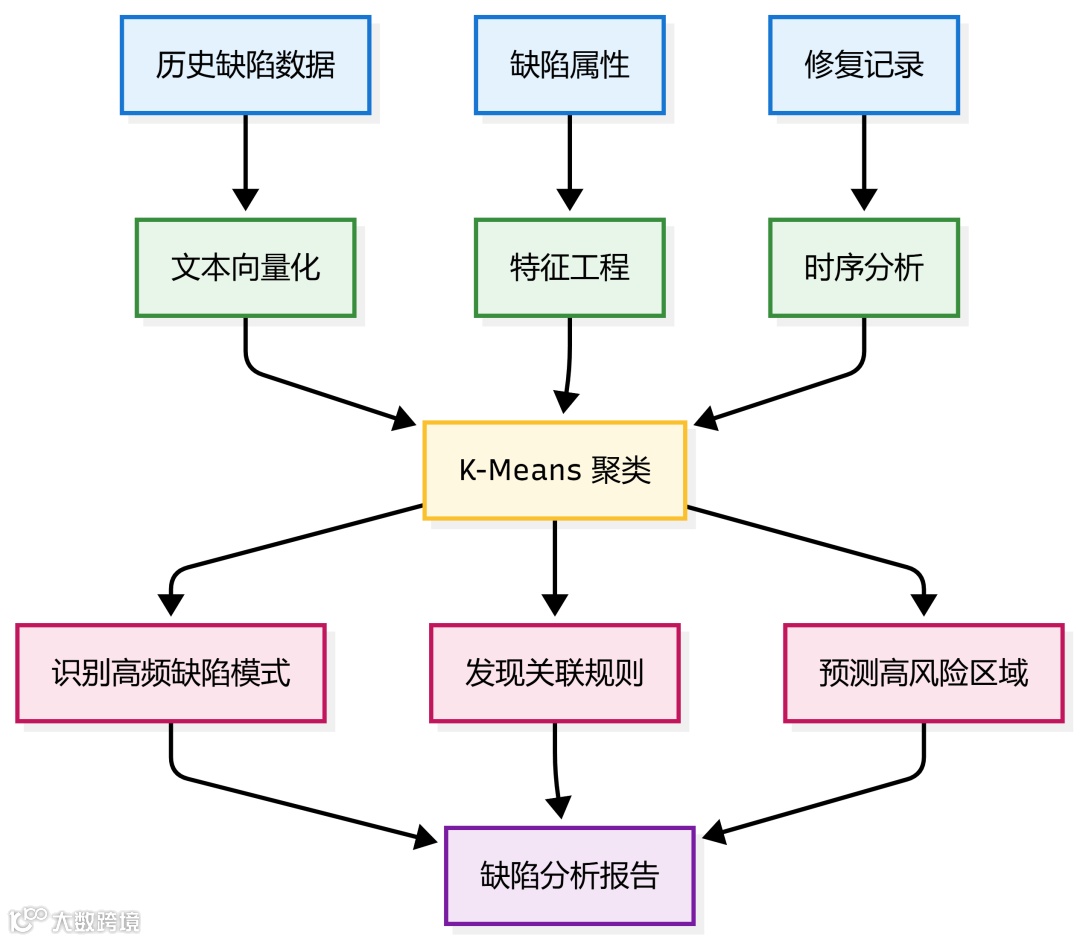 缺陷数据 → AI 自动聚类分析 → 识别高频模式 → 预测风险区域