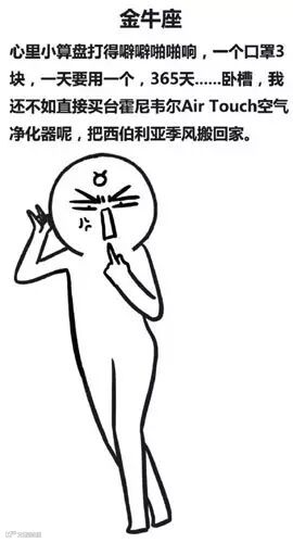 危害健康、妨碍出行、影响心情、破坏环境……说到雾霾,每个人都有一堆怨言,其中以金牛为最。负面情绪的堆积,使原本不爱多说话的他们变得有些阴沉,也因此更容易在熟悉的人面前,倾向于把各种不满一吐为快。这样的心情可以理解,但在这种大家都深受雾霾之害、谁都不比谁好过多少的时候,适度的收敛也是对他人的体谅,另外少些抱怨的话,自己的注意力也会渐渐转移到积极的方面哟。