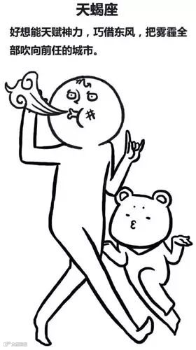 天蝎也是容易在雾霾的恶劣天气下,产生愤世嫉俗情绪的星座。一方面是因为灰沉沉的天色确实容易让人烦躁,另一方面也是因为他们习惯把问题分析透彻,从而比别人想得更多更远,情绪上的反馈也就更为激烈。既然这种思考模式是天生的,难以改变,那么天蝎在这样的时候也只能尽量减少出行,一方面降低被雾霾影响健康的风险,另一方面也求个眼前清净。