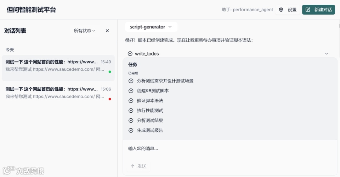 ● 🤖 自然语言交互 - 用对话方式描述测试需求,AI 自动生成专业 K6 脚本