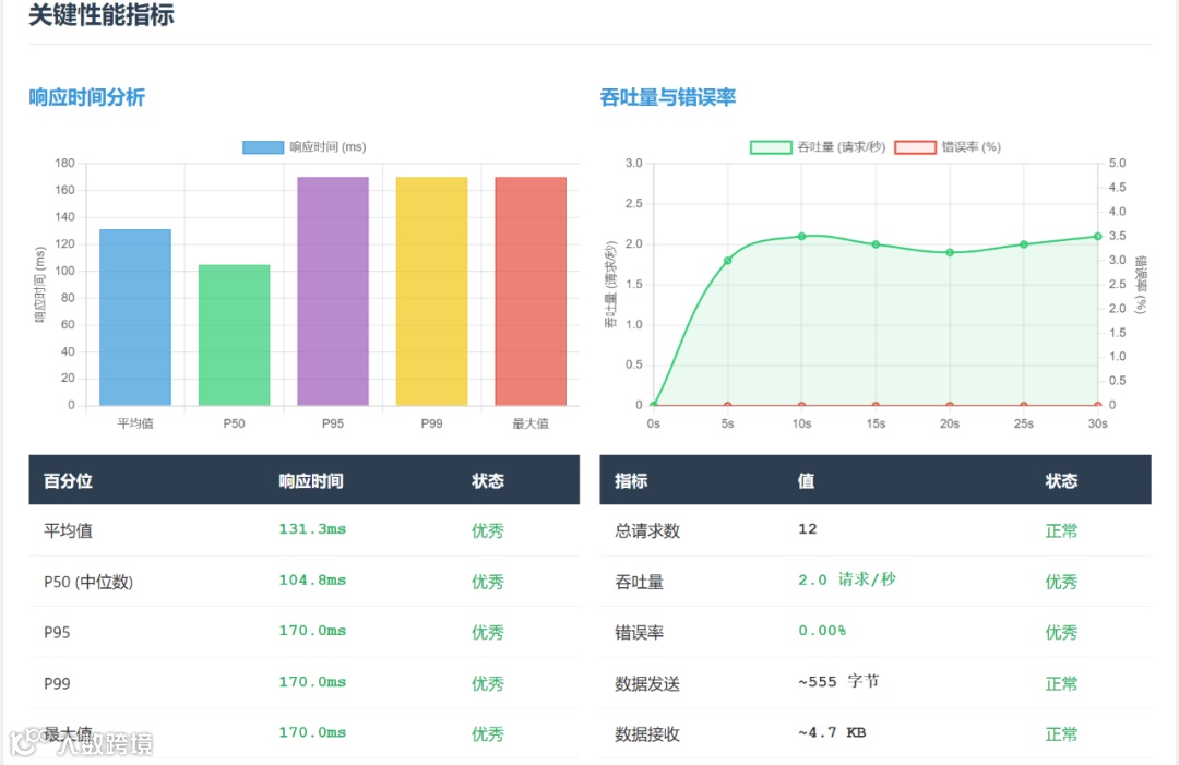 ● 📈 关键指标卡片(请求数、吞吐量、成功率、错误率)