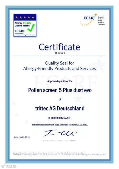 被德国媒体誉为“一块神奇的窗纱”、“欧洲花粉与微尘过敏人群的救星”,更有专家指出“这款革命性的产品将赋予生活在严重雾霾里的中国人自由呼吸的权利”。