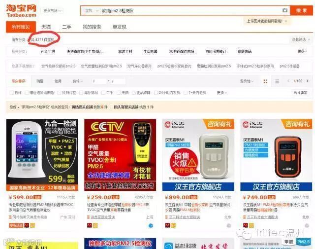 记者在淘宝上搜索雾霾检测仪,相关宝贝有3000多件,价格从几百到几千元不等。一家淘宝店主介绍,他们家的雾霾检测仪测得准,销量非常好,尤其最近一两个月,每天都有几十单的生意。