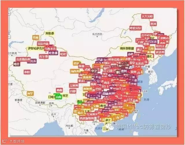 从2015年起,PM2.5监测点有了将近50个城市,(虽然并没有什么luan用...)如下是15年1月4日中午的全国污染地图: