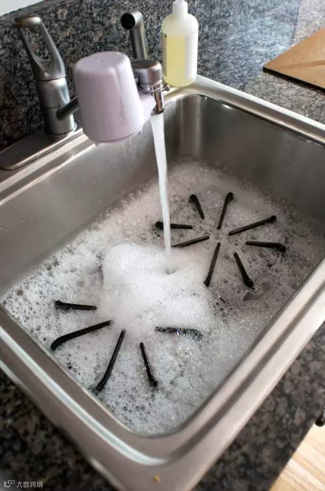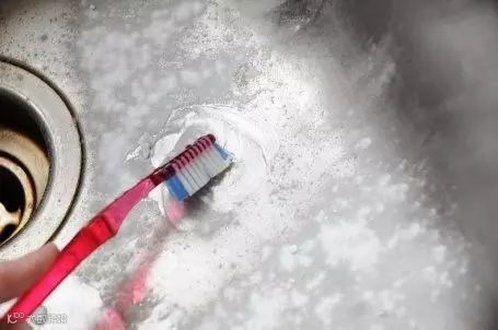 旧牙刷沾上水,仔细擦洗水槽~排水孔是重点清洁区域哦!