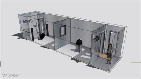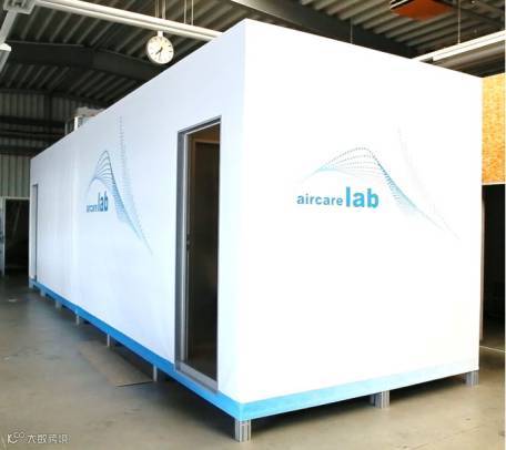 为了检测这款纱窗的有效性,科学家们筑起了一座专业的实验房,然后隔成4个部分,中间被一堵带有窗口的墙拆分成两个空间,用于模拟室内与室外环境,外侧的两个空间则作为操作间使用。为了防止干扰,保证实验的严谨性,科学家们会对空间进行净化处理。
