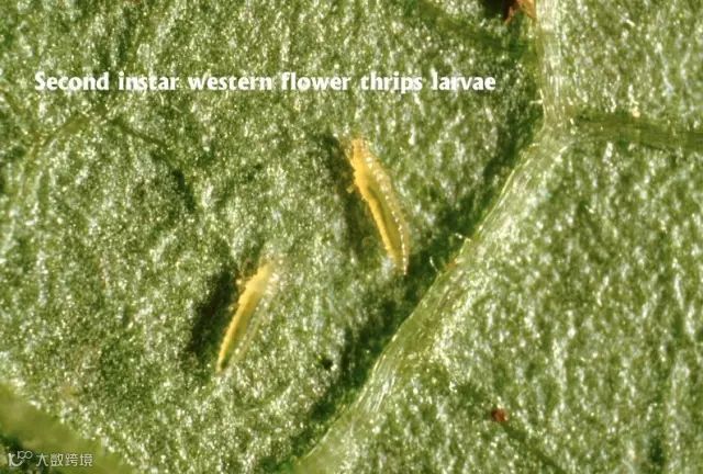蓟马体微小,体长0.5-2mm,很少超过7mm;幼虫呈白色、黄色、或橘色,成虫则呈棕色或黑色;头略呈后口式,口器锉吸式,能挫破植物表皮,吸允汁液。在田间不细看,很难发现,一年四季均有发生,而且抗药性强。