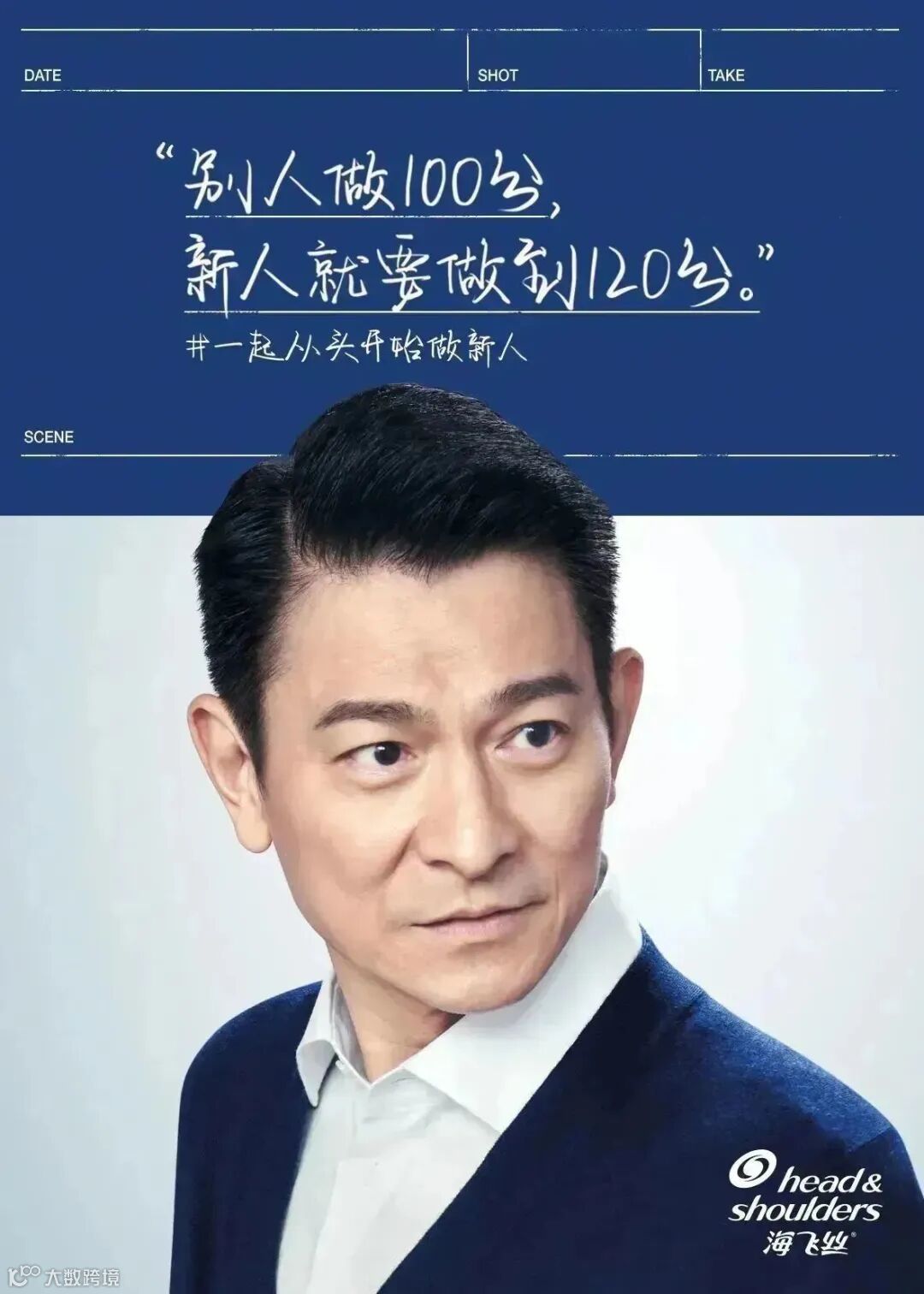 于是,我们把影片包装为“新人”刘德华新年第一镜,加入打板、片场环境等元素,营造松弛感的casting现场。