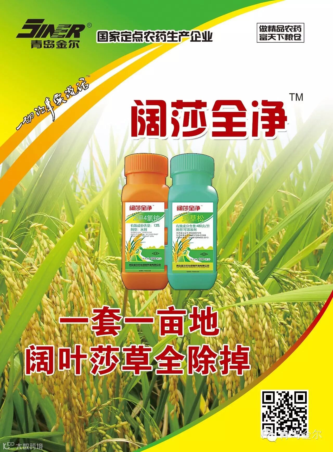 青岛金尔水稻田杂草解决方案家族又添新成员,历经数年科研攻关又一新产品风暴来袭,阔莎全净,专注稻田阔叶杂草、莎草,强势袭来统统全除掉!!!