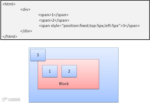 这种情况下的布局完全不顾普通的文档流,元素不属于文档流的一部分,大小取决于容器。Fixed时,容器为viewport(可视区域)。