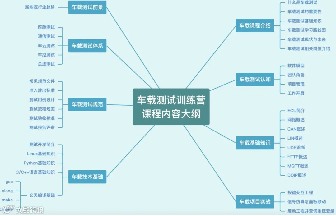 在本训练营中,我们会从⻋载技术岗位基础知识开始介绍,辅以⼤量的技术实践和项⽬实战,通过CANoe模拟,帮助⼤家快速掌握⻋载测试开发的进阶知识。