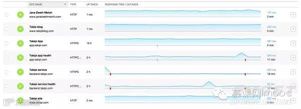 6.正常运行时间和服务运行状态这一指标奠定了整个应用程序性能的基础。不仅可以当做一个提醒指标,也可以让你定义一段时间内的SKA。我们可以使用Pingdom的servlet功能进行运行状态检查。我们可以查到应用程序的所有传输,包括数据库和S3。