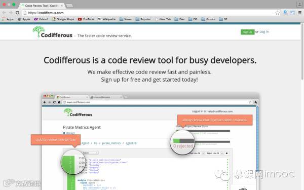 5)CodifferousCodifferous是一款免费的代码审查工具,能为我们提供更快的代码审查服务。无论你在何时何地,Codifferous能让你的团队协作审查工作变得更容易。你忘记了一个pull请求?没事。Codifferous允许你检查任意分支上的代码,无论何时你都可以留下注释、获得反馈。