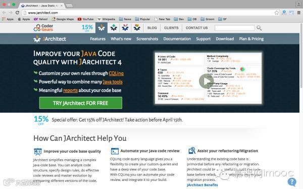 16)jArchitectJArchitect可简化复杂Java代码库的管理。你可以使用JArchitect分析代码结构、指定设计规则、执行高效的代码审查,以及通过比较不同版本的代码掌握作出的改进。
