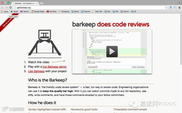 6)GetbarkeepBarkeep是“非常友好的代码审查系统”——让你用一种快速又有趣的方式来检查代码。你也可以用它翻阅Git存储库的提交,看diff文件,写注释,并且你还可以将这些注释通过电子邮件发送给下一位提交者。