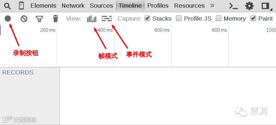 首先,按下 F12 打开"开发者工具",切换到Timeline面板。