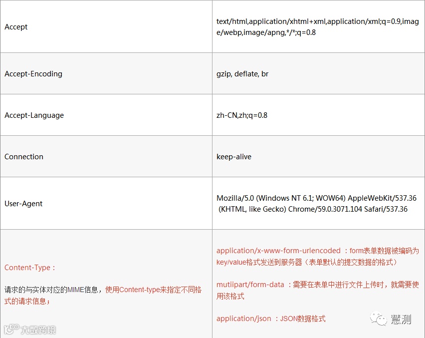 3、常用请求头,这些一般可以抓包和在浏览器中查到,如下表所示: