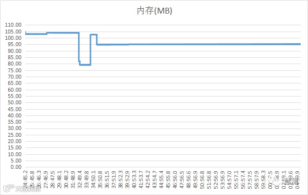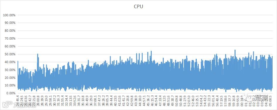 CPU形成的图表,可见空闲状态下,CPU占用率90% 位置数据是38%