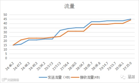 空闲状态下,流量较少,发送和接收流量基本在45KB以内