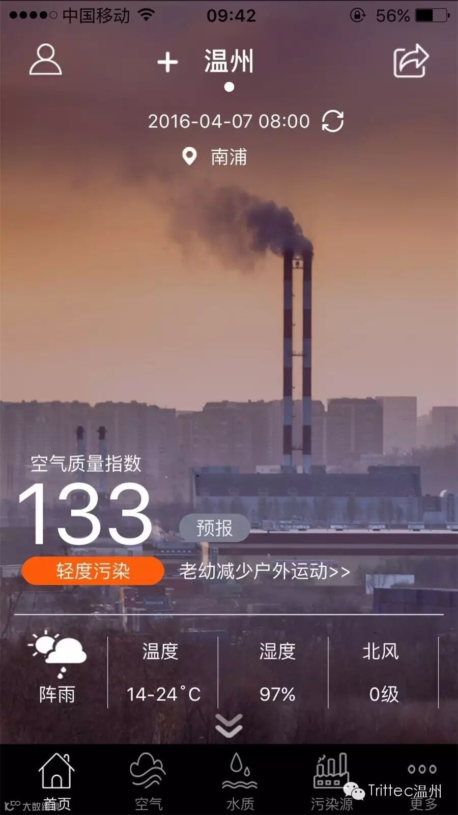 今天温州污染严重,AQI指数过百,敏感人群症状易加重,紧闭门窗,减少通风,外出需佩戴N95以上口罩,应适当减少室外出行。当然,在安装了我们trittec璀泰可防雾霾窗纱之后,尽情放心的开窗通风。温州trittec旗舰店欢迎你的到来,咨询。