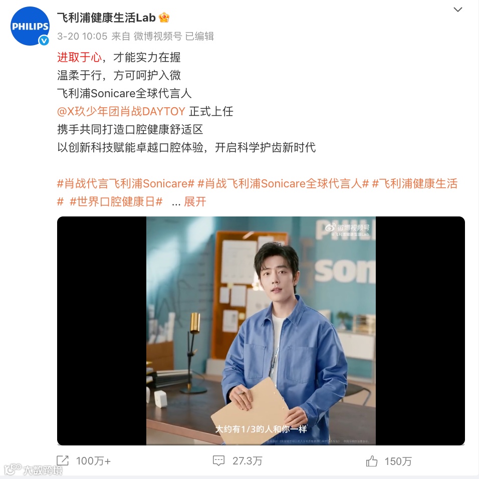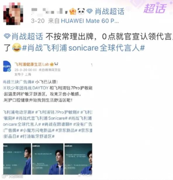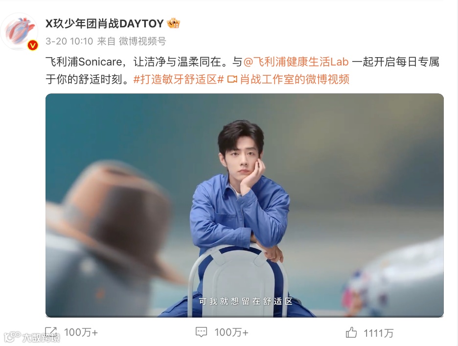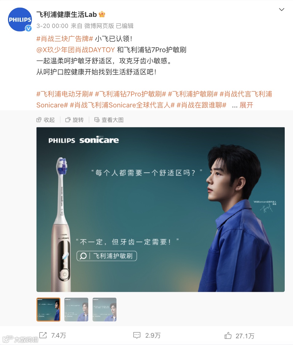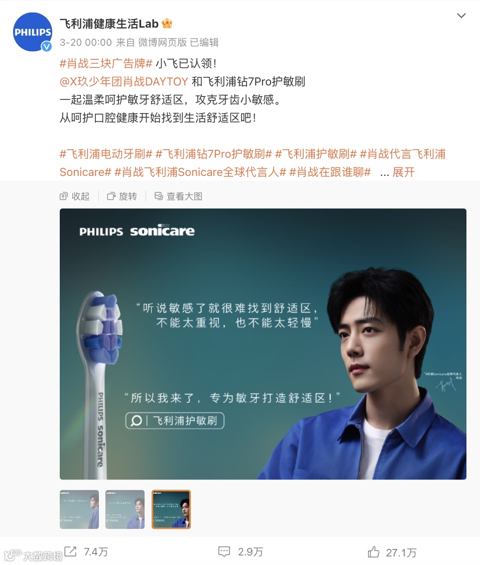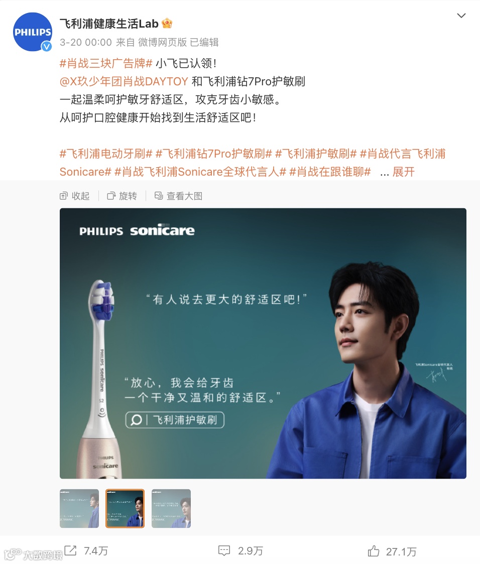 微博热搜:#肖战飞利浦sonicare全球代言人#