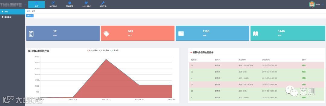 首页现只展示接口、用例、项目、日志信息,然后就是每日用例执行数。