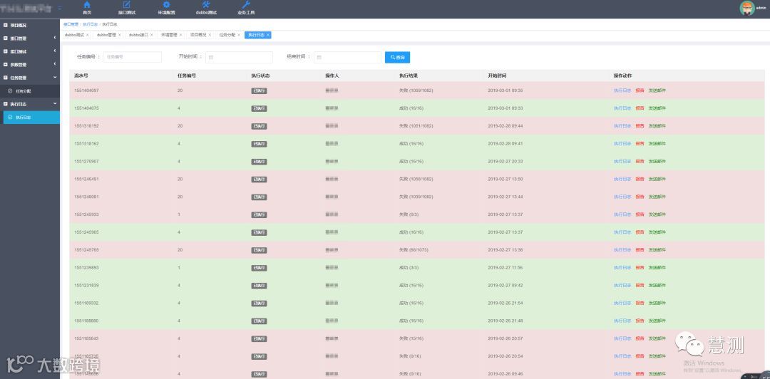 任务执行的所有用例结果肯定会保存在一个执行结果表里边,那个这个日志管理相当于展示该执行结果,展示方式那就看自己喜欢的方式了,我们是一个任务有任务编号,每执行一次称流水号,列表展示就是按照 任务号--流水号展示,他跟我们 http接口集成平台其实是一样。