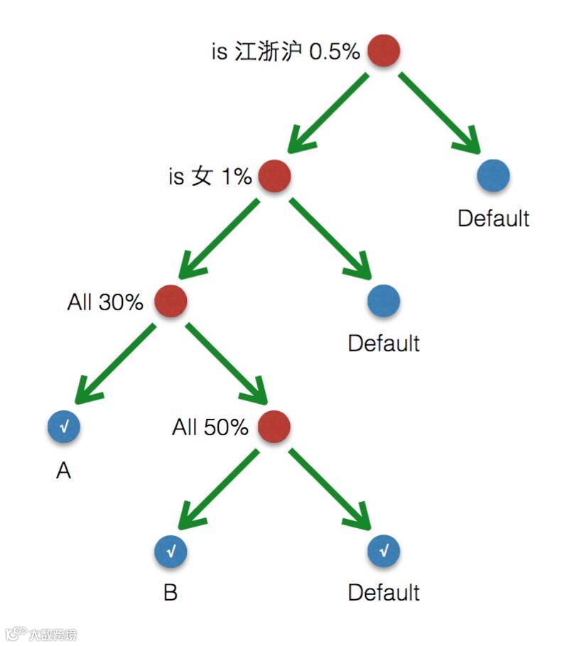 关于Default:因为我们做AB测试是对新逻辑的实验,有新逻辑必然有旧逻辑。我们认为落入Default节点的就是旧逻辑。
