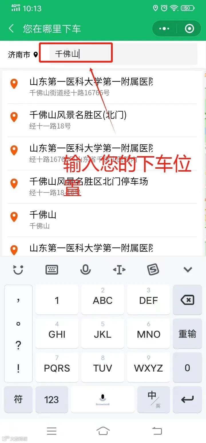 5. 根据搜索出的地点选择在哪下车;