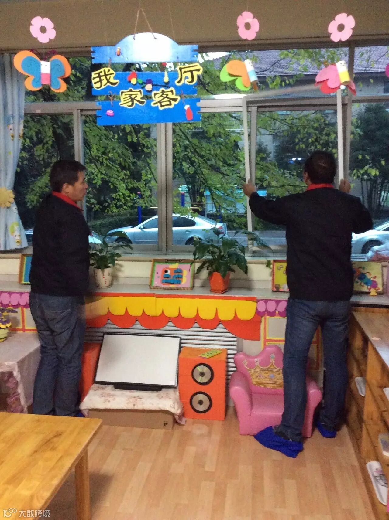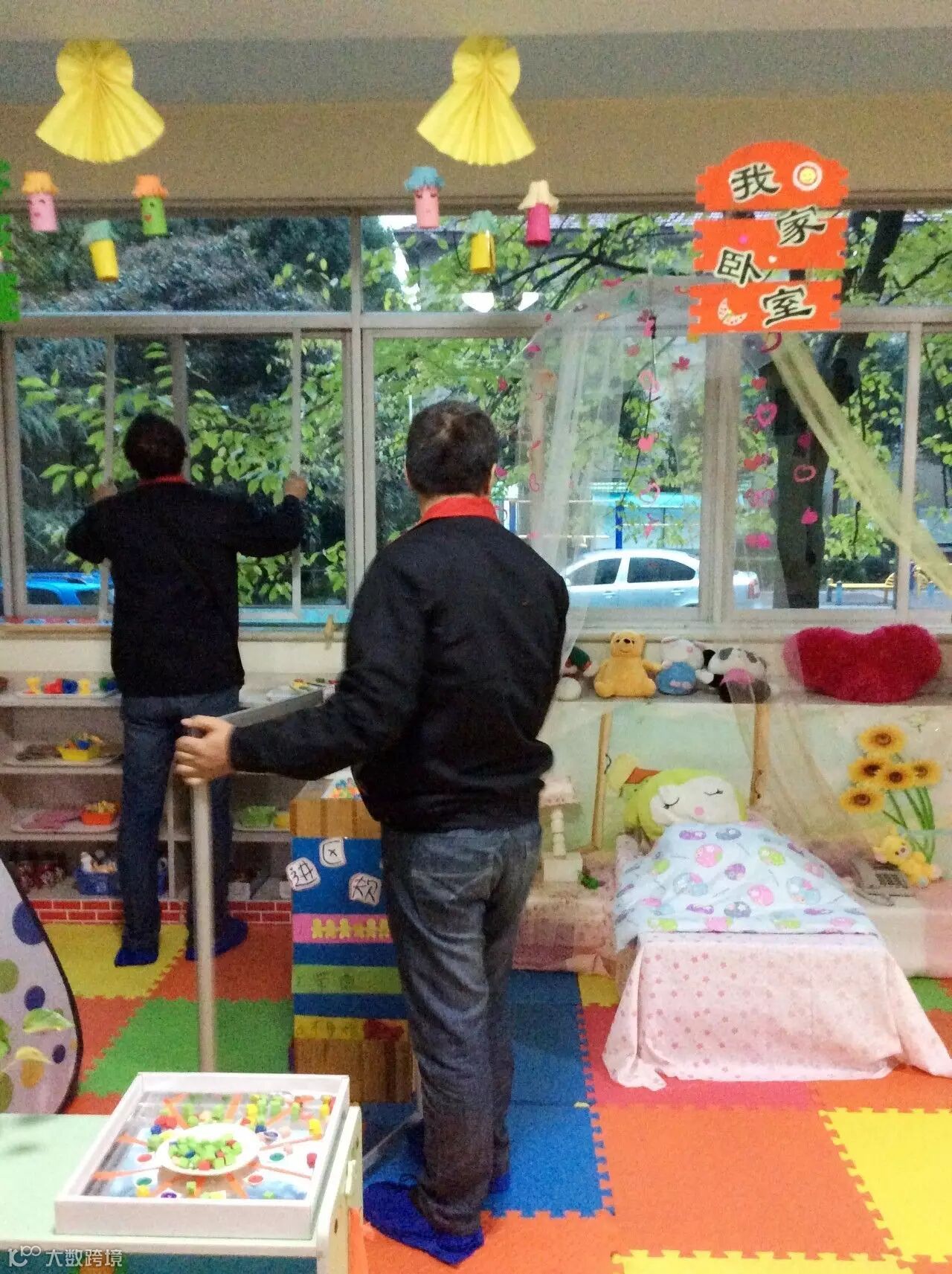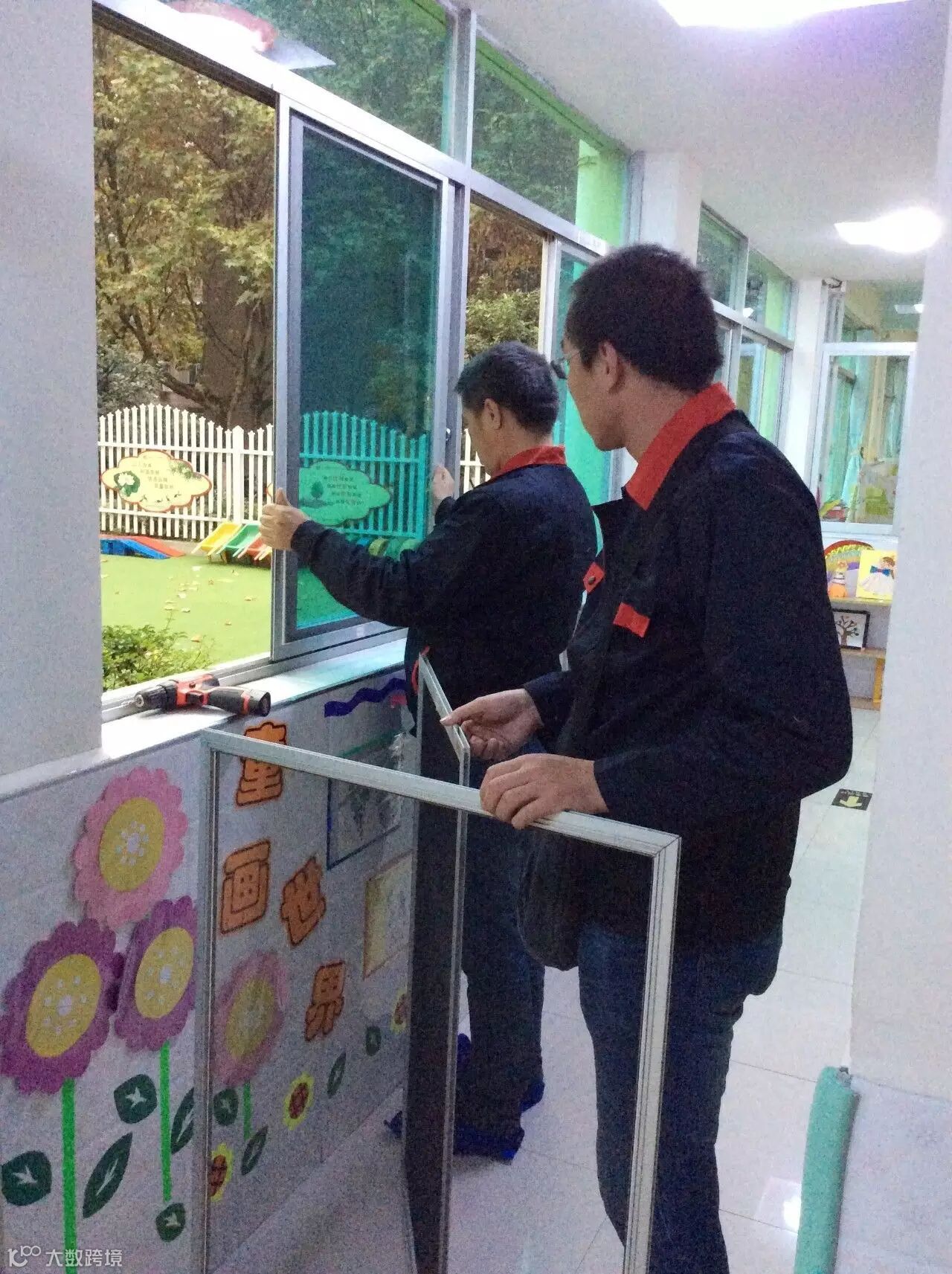 安装工程师在无锡滨宋庆龄幼儿园测量尺寸