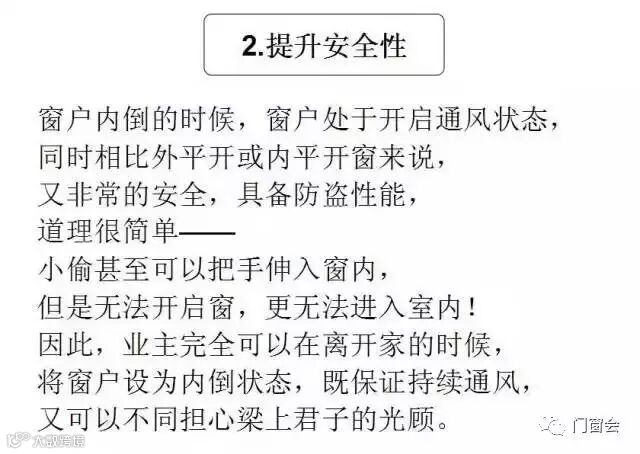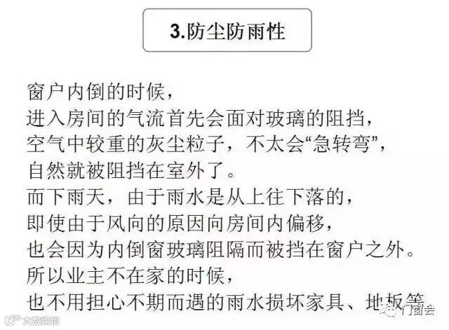 对于内开内倒窗而言,99%以上的时间里,只会保持两种状态:关闭状态或者内倒状态。而这1%的完全内平开的状态,也只有两种可能:短时间的强化通风需要,以及搽窗户的需要。