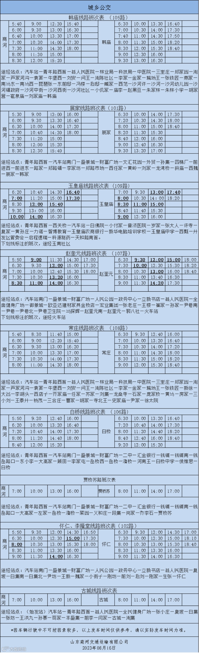 城乡公交时间表