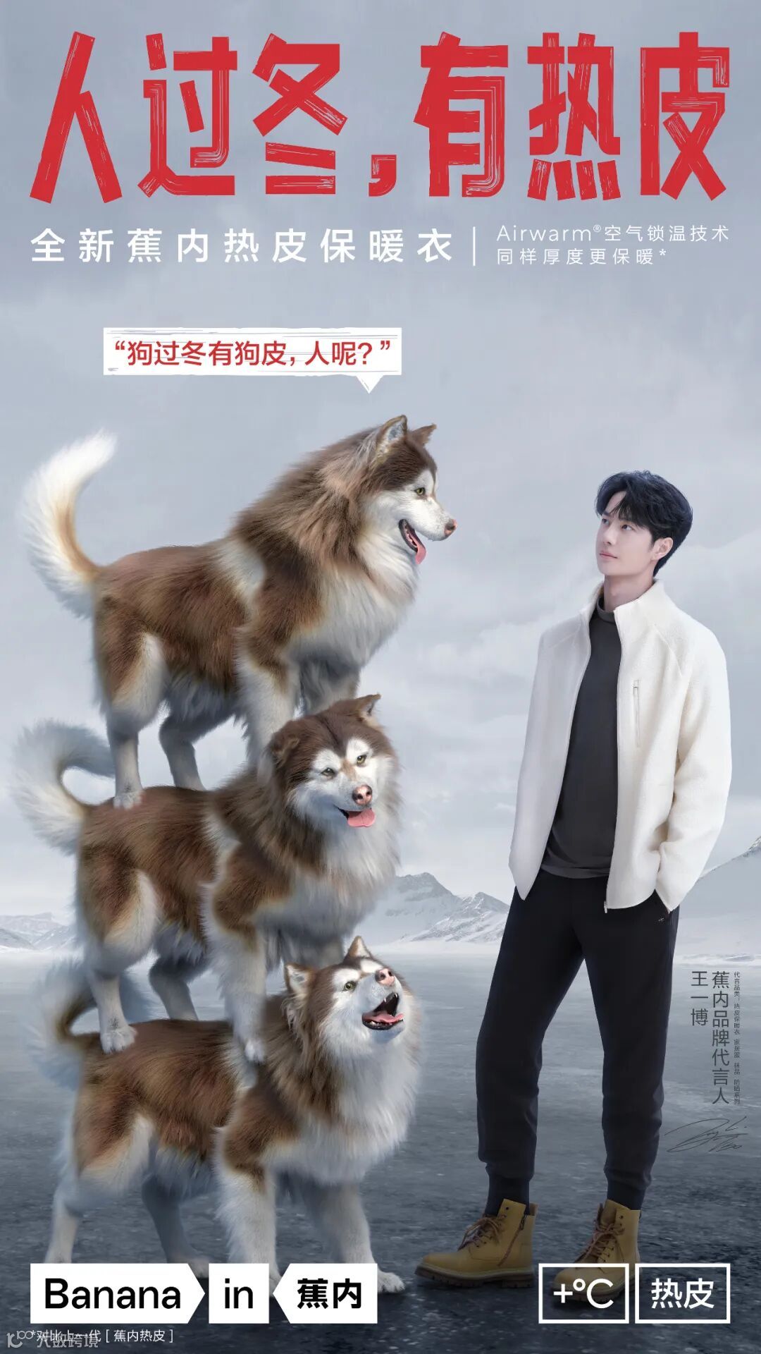 拥有热皮的王一博和拥有羊皮熊皮狗皮的小动物们呈现出“对峙”之势。
