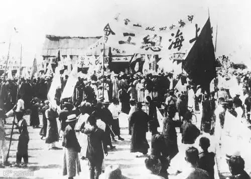(▲ 图为“五卅”运动爆发时上海总工会的游行队伍)