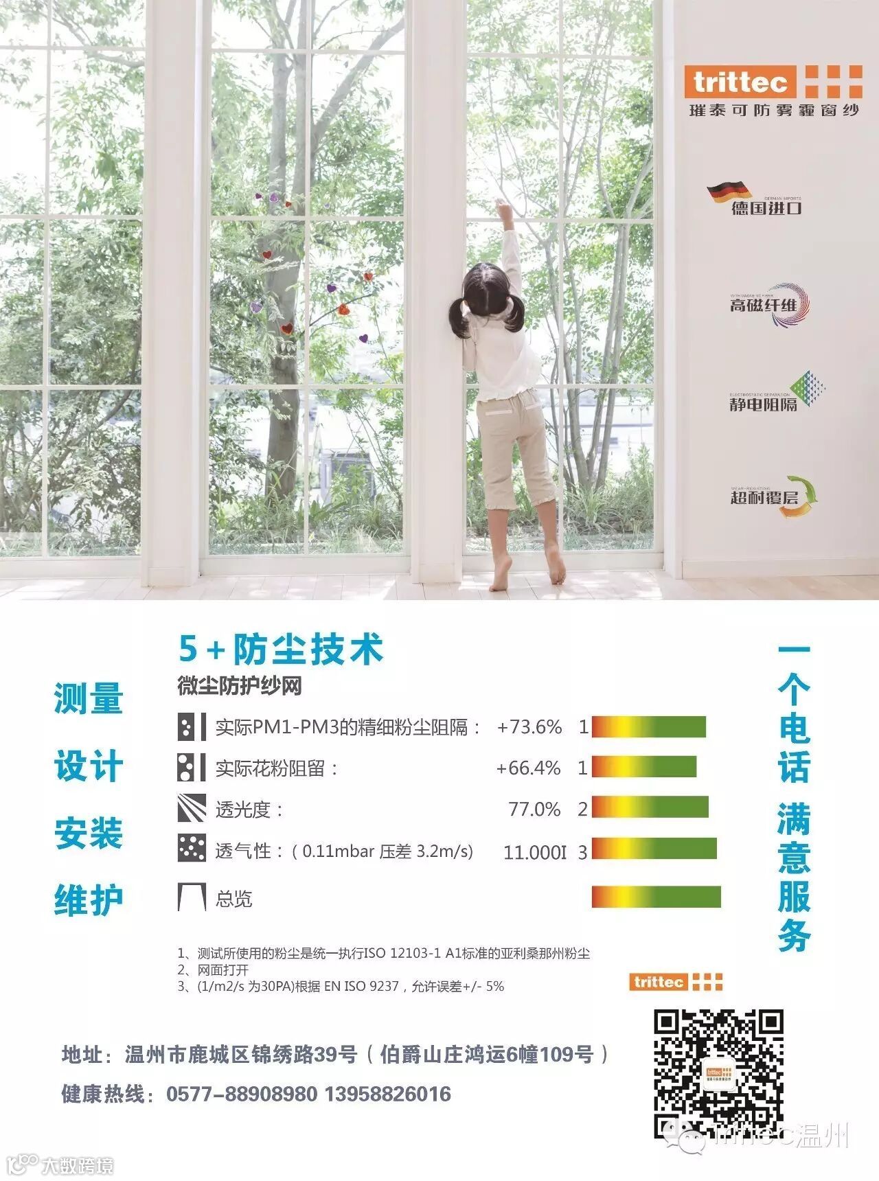 爱家人,送健康,用行动,守护家人的呼吸!德国trittec防雾霾纱窗,从空气开始,给您一个健康的环境!