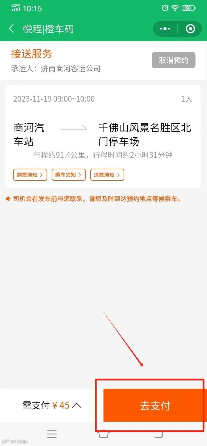 ⑧支付订单,出行前等待司机电话联系即可。