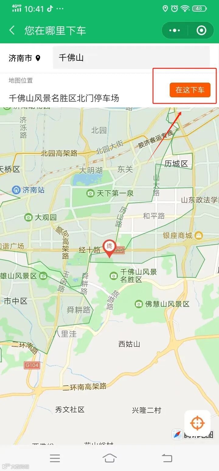 ⑤根据搜索出的地点选择在哪下车;